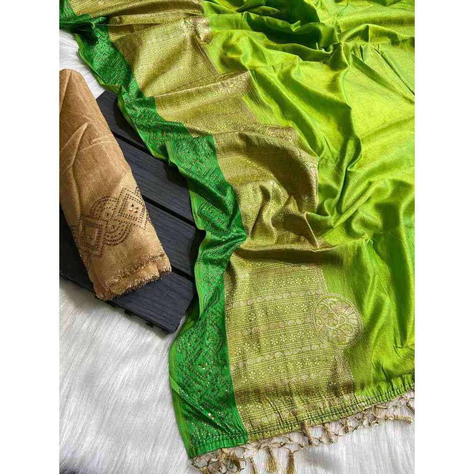 PARTY WEAR SILK JACQUARD WORK SAREE WITH UNSTITCHED BLOUSE GREEN