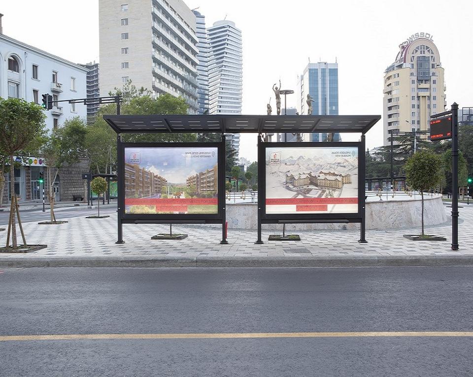Abri de bus rectangulaire extérieur à un seul côté PARYA en aluminium avec boîte lumineuse publicitaire MUPI