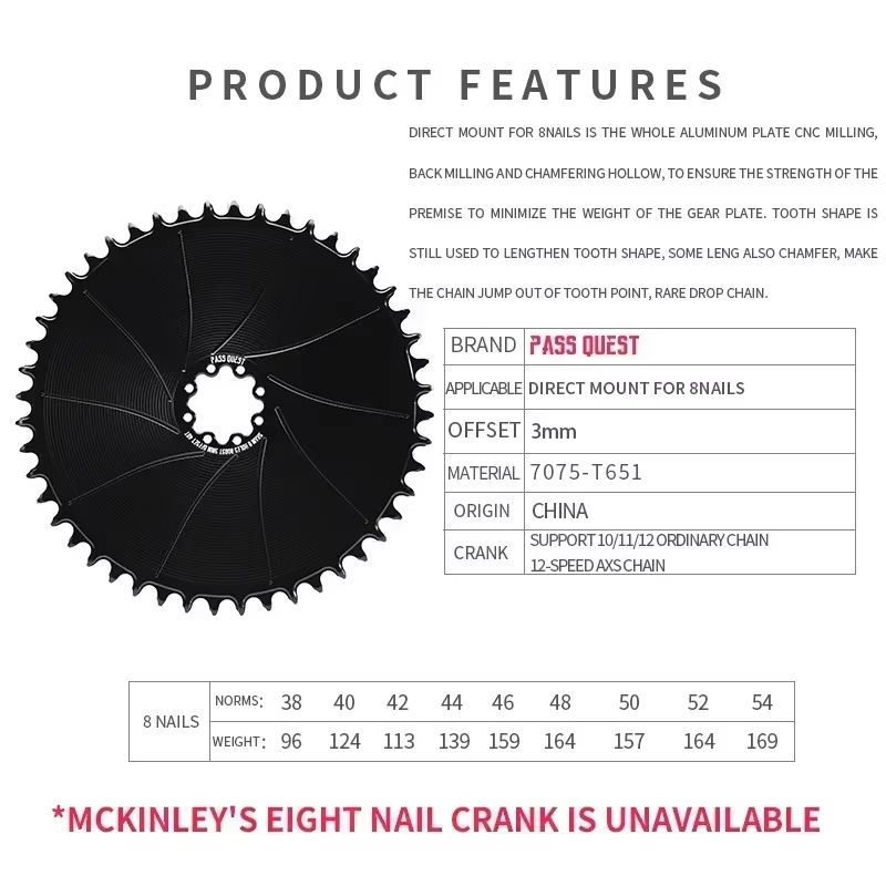PASS QUEST 3mm Offset 8 Boulons Vélo De Route Étroit Large Montage Direct Plateau 38-54T Plateau pour Sram ETAP AXS 12s FORCE ROUGE Manivelle