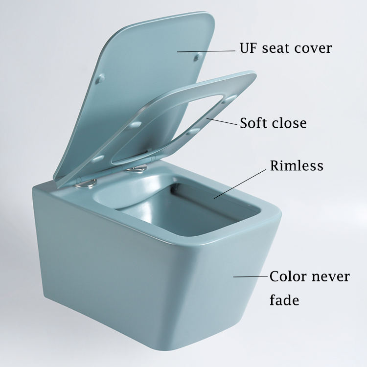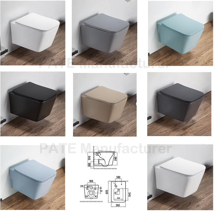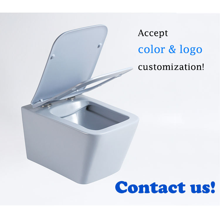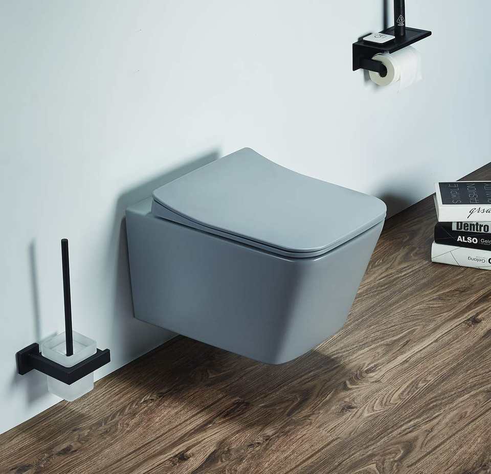 WC mural sans bride en porcelaine colorée gris mat PATE B2351MH, WC carré gris personnalisé avec réservoir d'eau dissimulé