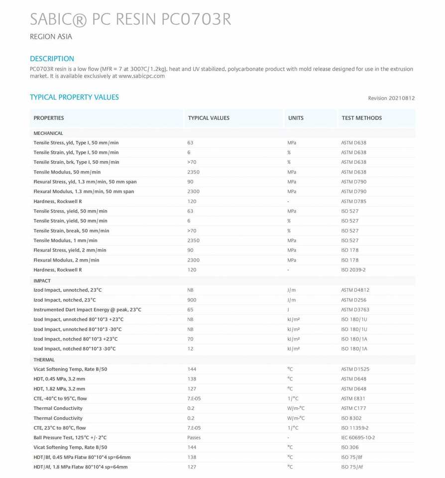 Attribut matériel:Catégorie d'extrusion Catégorie stabilisée à la chaleur Catégorie de résistance UV