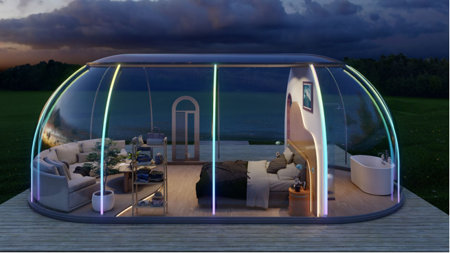 PC Germony Polyacrbonate Bubble Glamping Dome Geodesic Tent Dining Room Hotel Airbnb