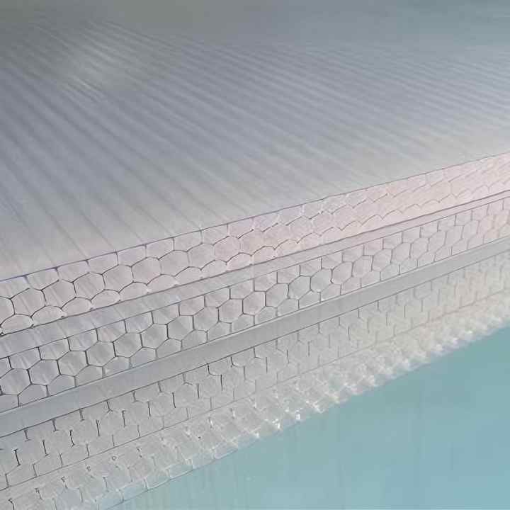 Fabricants de PC, vente en gros de plaques en polycarbonate, plaque solaire transparente en PC, plaque solaire en nid d'abeille à quatre couches, plaque en polycarbonate gaufrée