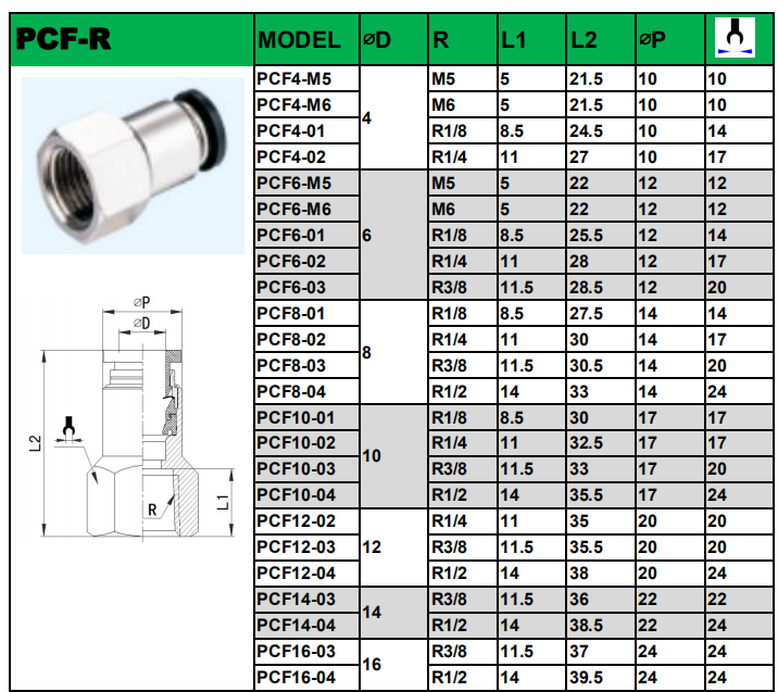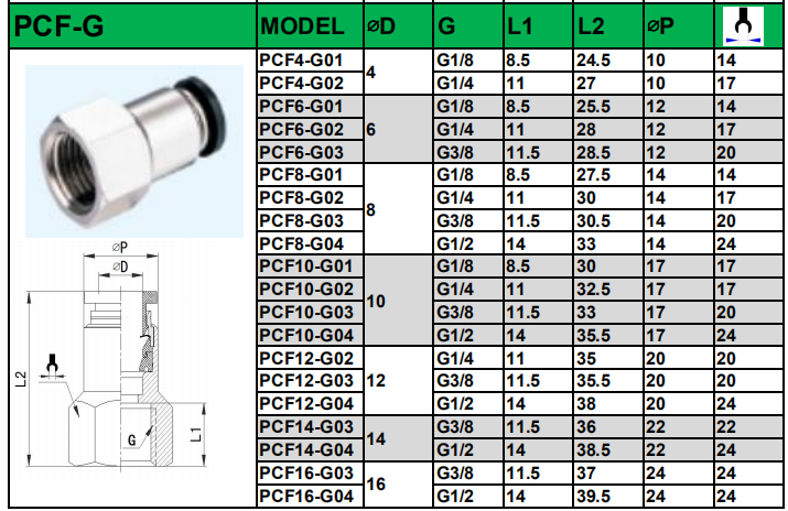 Wosai PCF vis femelle à filetage de laiton droit, connexion rapide, un type tactile de laiton en plastique, raccords pneumatique