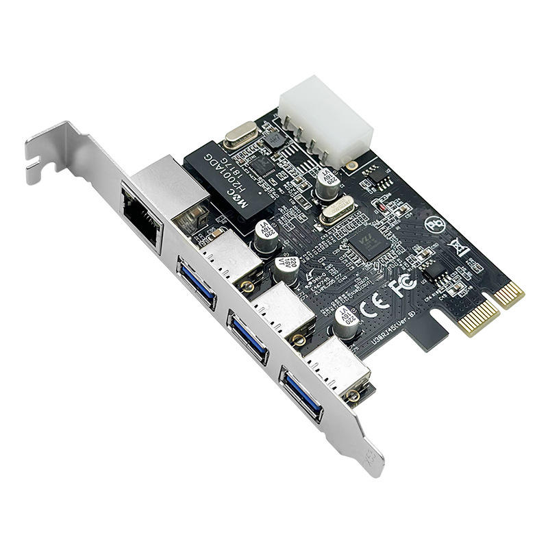 PCI Express USB3.0 Hub adaptateur 3 ports 4Pin alimentation RJ45 Gigabit carte d'extension réseau pour ordinateur de bureau