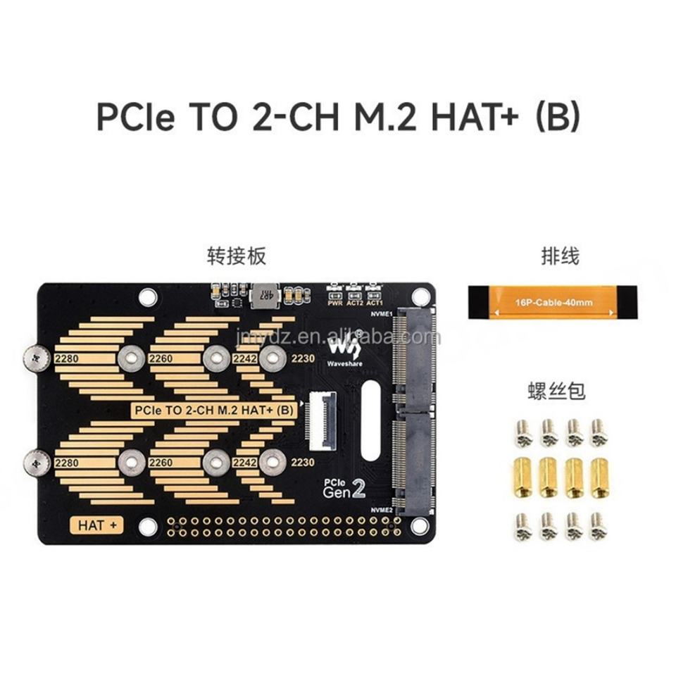Adaptateur PCIe vers 2 ports M.2 HAT+ (B) Waveshare pour Raspberry Pi 5, compatible avec les SSD NVMe M.2 de taille 2280/2260/2242/2230