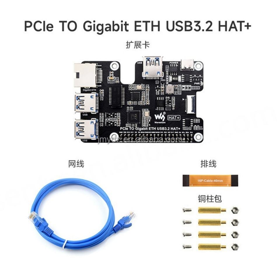 Adaptateur PCIe vers USB 3.2 Gen1 / 2.5G ETH / M.2 NVMe pour Raspberry Pi 5, prend en charge le protocole NVMe M.2 SSD