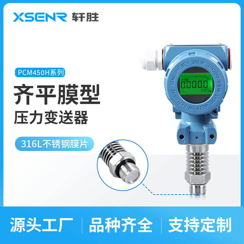 Transmetteur de pression numérique PCM450H, précision 0,5, IP65, industriel, à membrane plate, métallique, sortie 4-20 mA