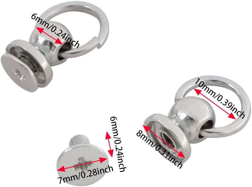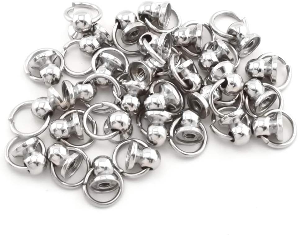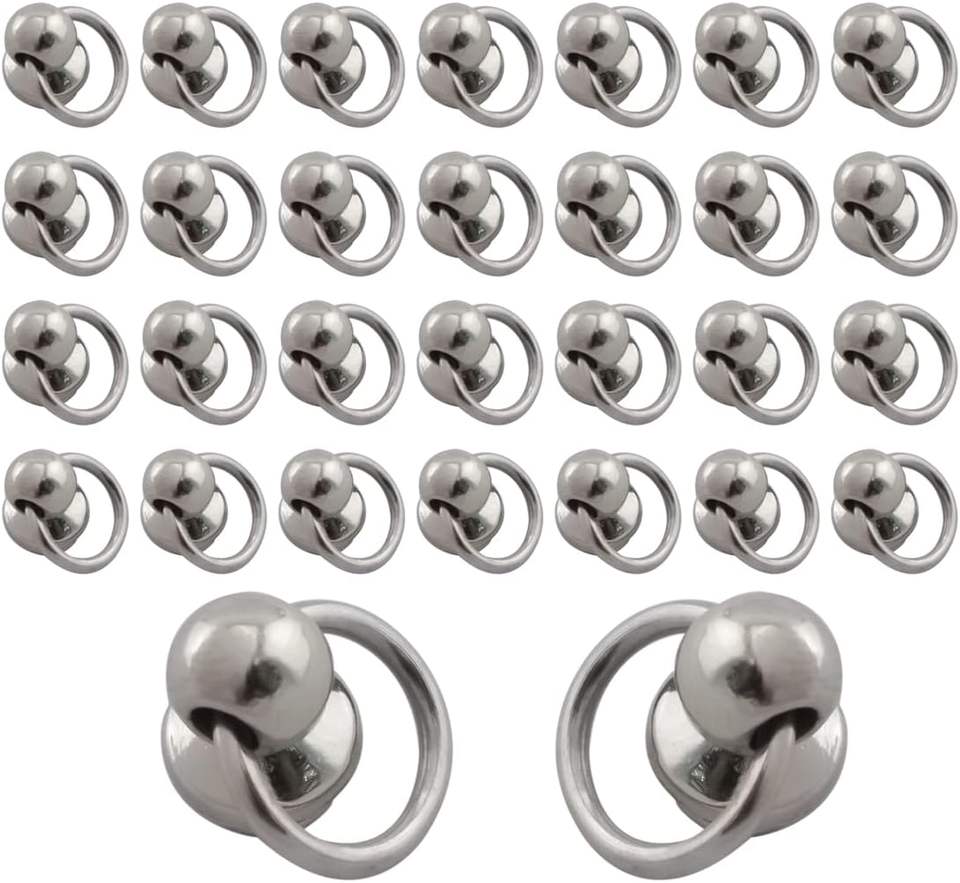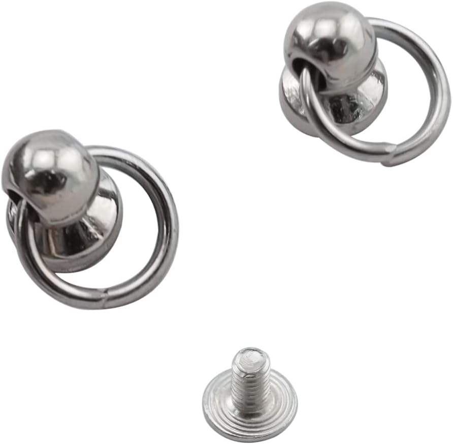 Clous à visser en argent à tête ronde avec anneau de traction, accessoire DIY pour le cuir, les vêtements, les sacs, les chapeaux et les ceintures