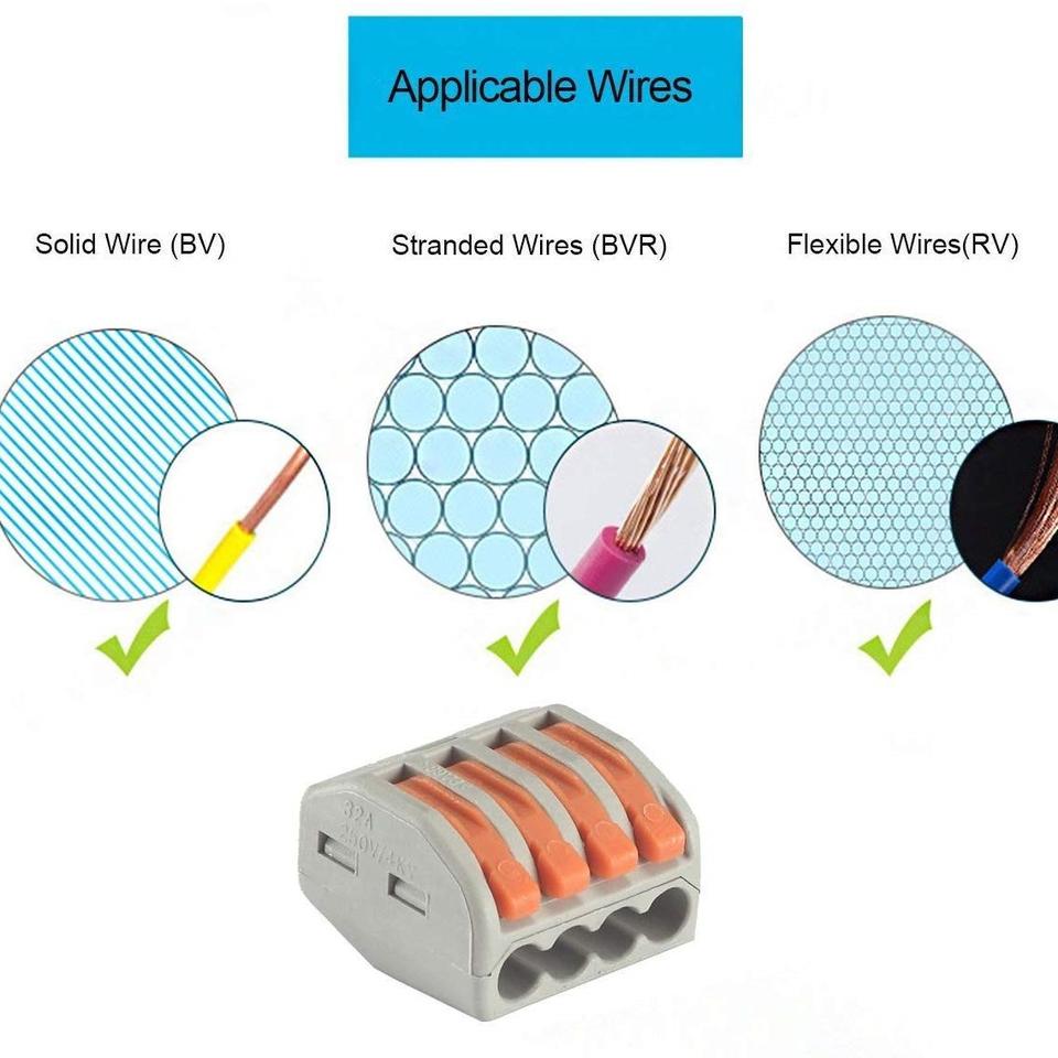 Connecteur de câblage pour bornier PCT, sans vis, à branchement rapide, en matériau PC ignifuge, pour électriciens