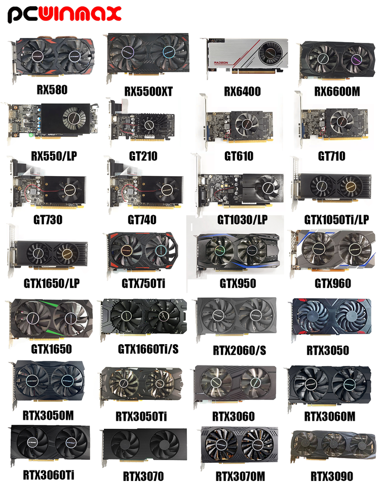 Carte graphique PCWINMAX GTX GT 210 610 710 730 1030 1050 Ti 1650 1GB 2GB 4GB DDR3 DDR5 GPU Carte graphique à profil bas