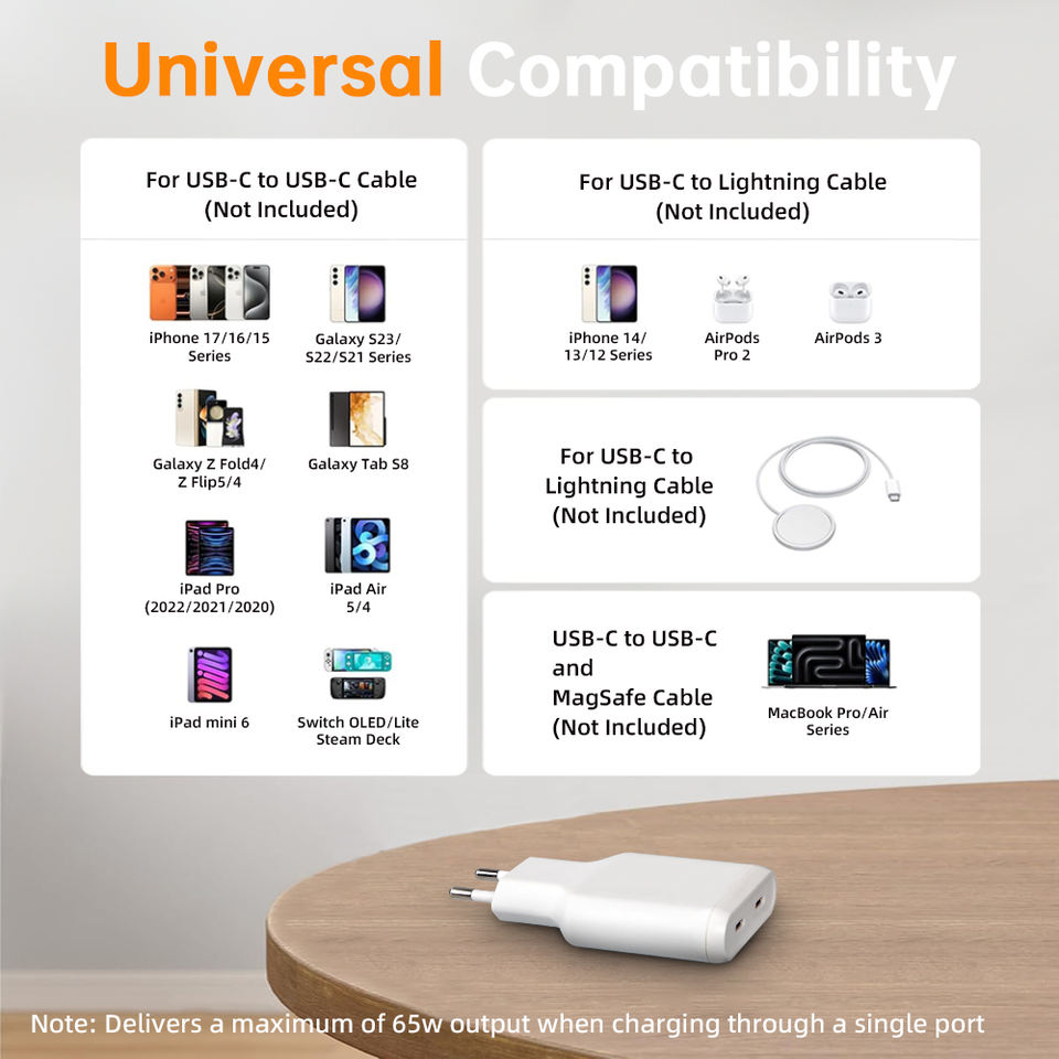 PD 30W Super Fast Charger Quick QC3.0+ Multi-Port 1C1A Plug for IPhone IPad Mac Sumsung Compact Foldable Portable Slim Thin