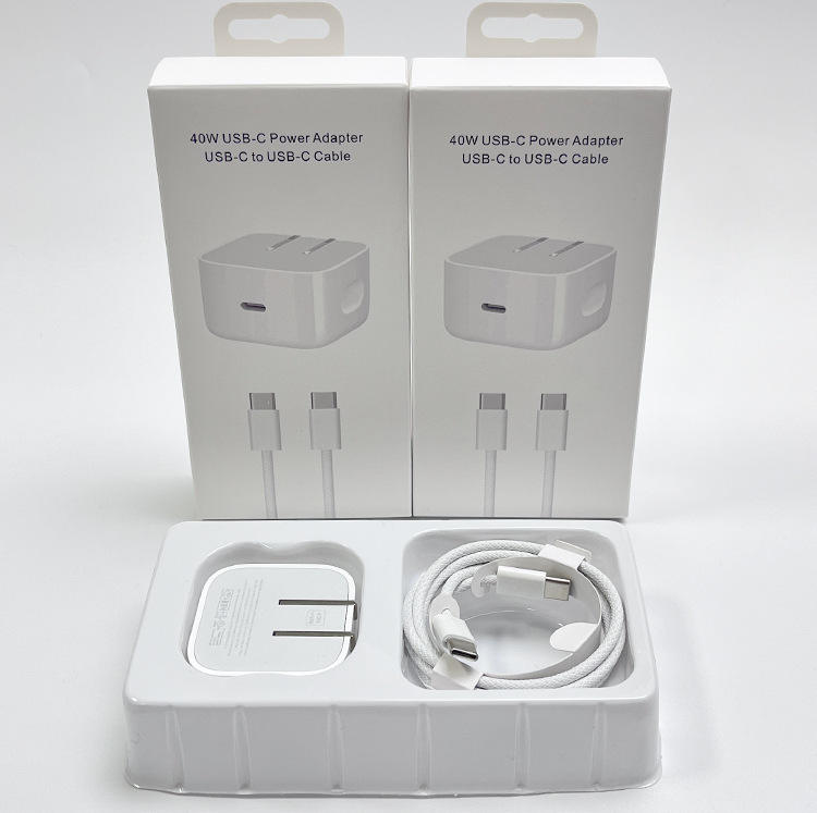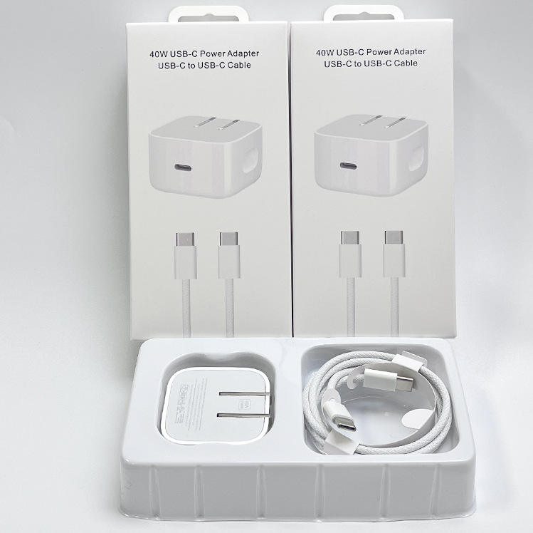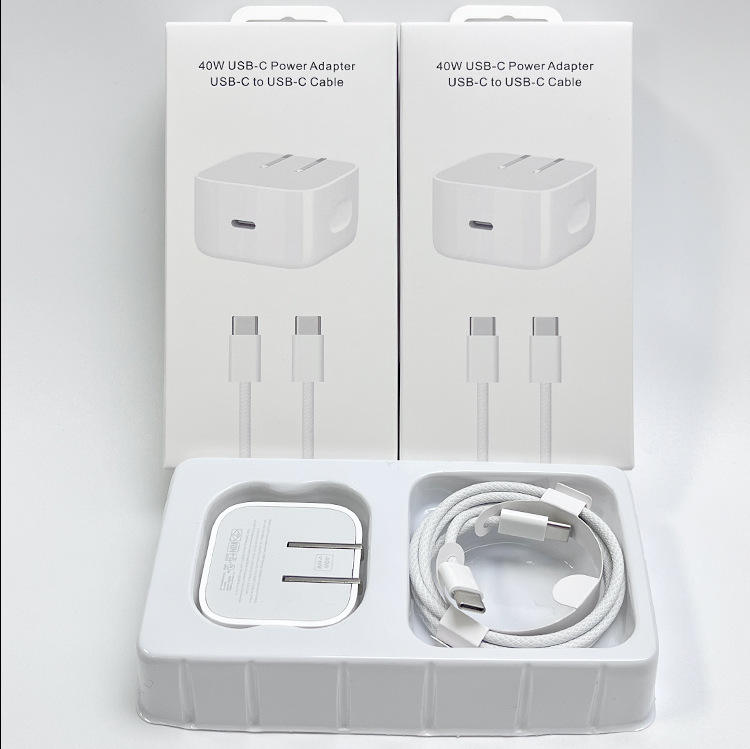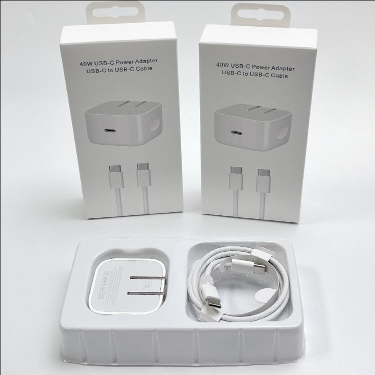 Chargeur USB-C PD 40W pour iPhone, adaptateur Type-C, ensemble de charge rapide pour iPhone 17 16 15 14 Pro avec câble tressé, prise US, pliable