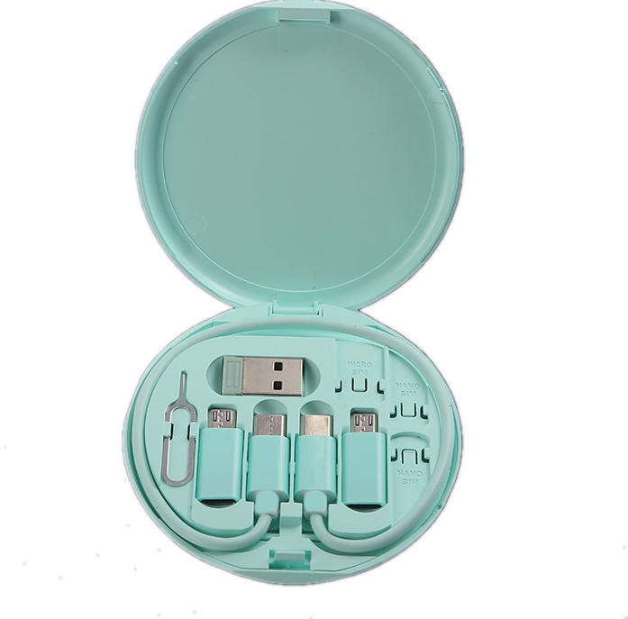 Kit adaptateur multi-câbles de voyage PD 60W 6-en-1 convertisseurs de câble de données de charge boîte de rangement de cartes miroir en cuivre pur pour l'utilisation de l'imprimante