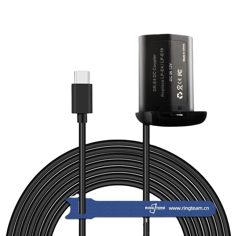 Adaptateur PD TYPE-C à batterie factice LP-E4 LP-E19, coupleur cc DR-E4 pour Canon 1DX MARK 2 1DX 1DS MARK 3 1D MARK 4 EOS R3
