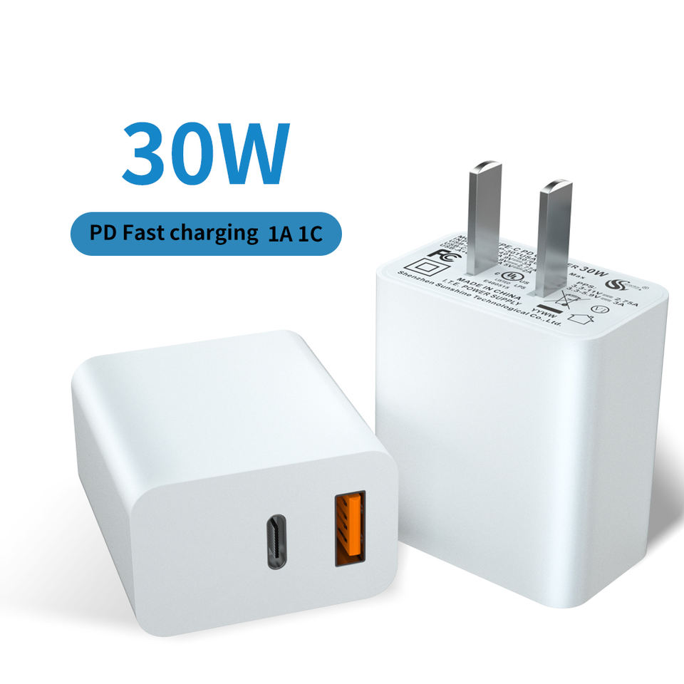 Chargeur Rapide GaN PD 20W et 30W QC3.0 PD3.0 USB-C pour Téléphone Portable, Approuvé UL CE