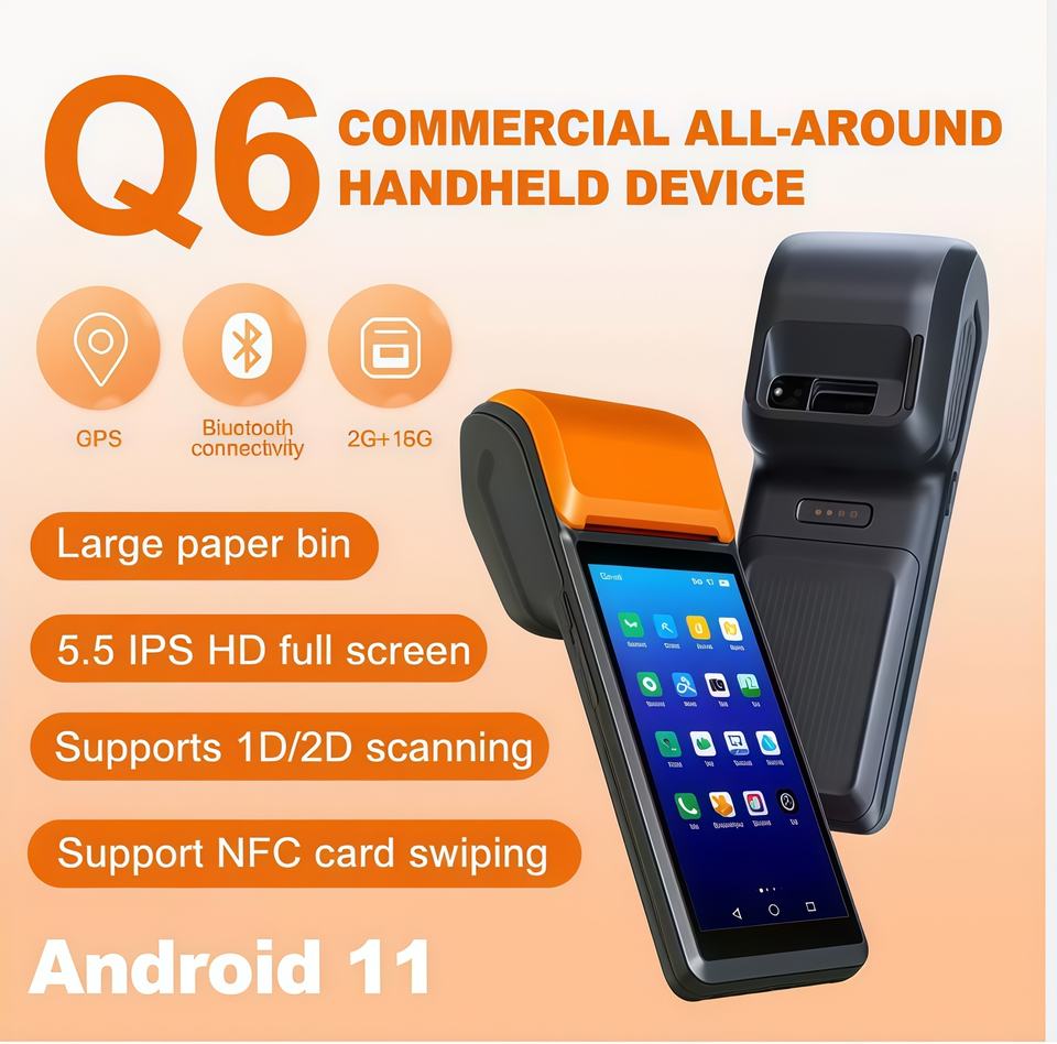 Terminal de lecture de codes-barres et QR professionnels PDA Q6Pro 5,5 pouces 4G avec imprimante de reçus, 32 Go de RAM, NFC, en stock