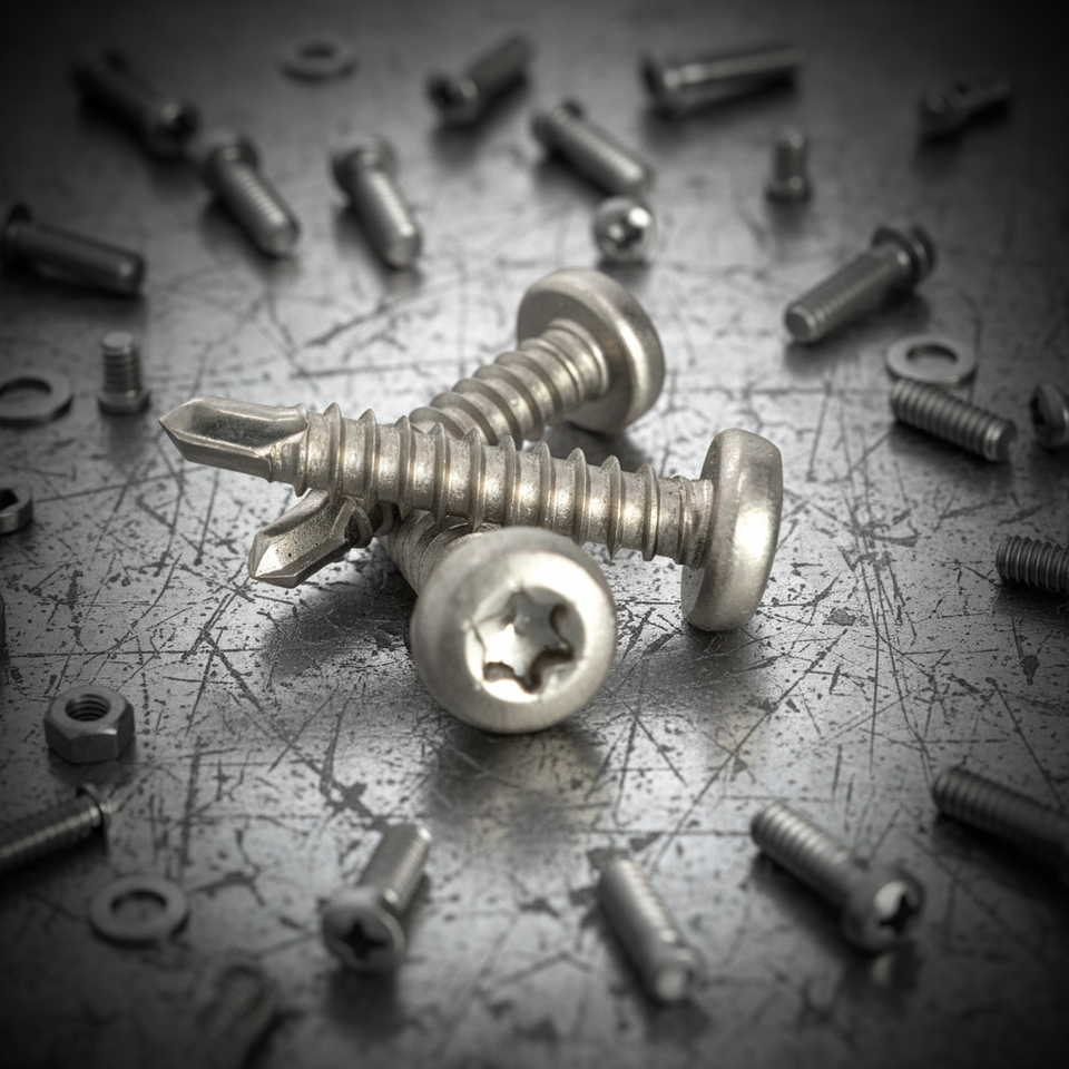 Thread Design:Deep coarse thread, sharp and uniform, optimized for metal fastening