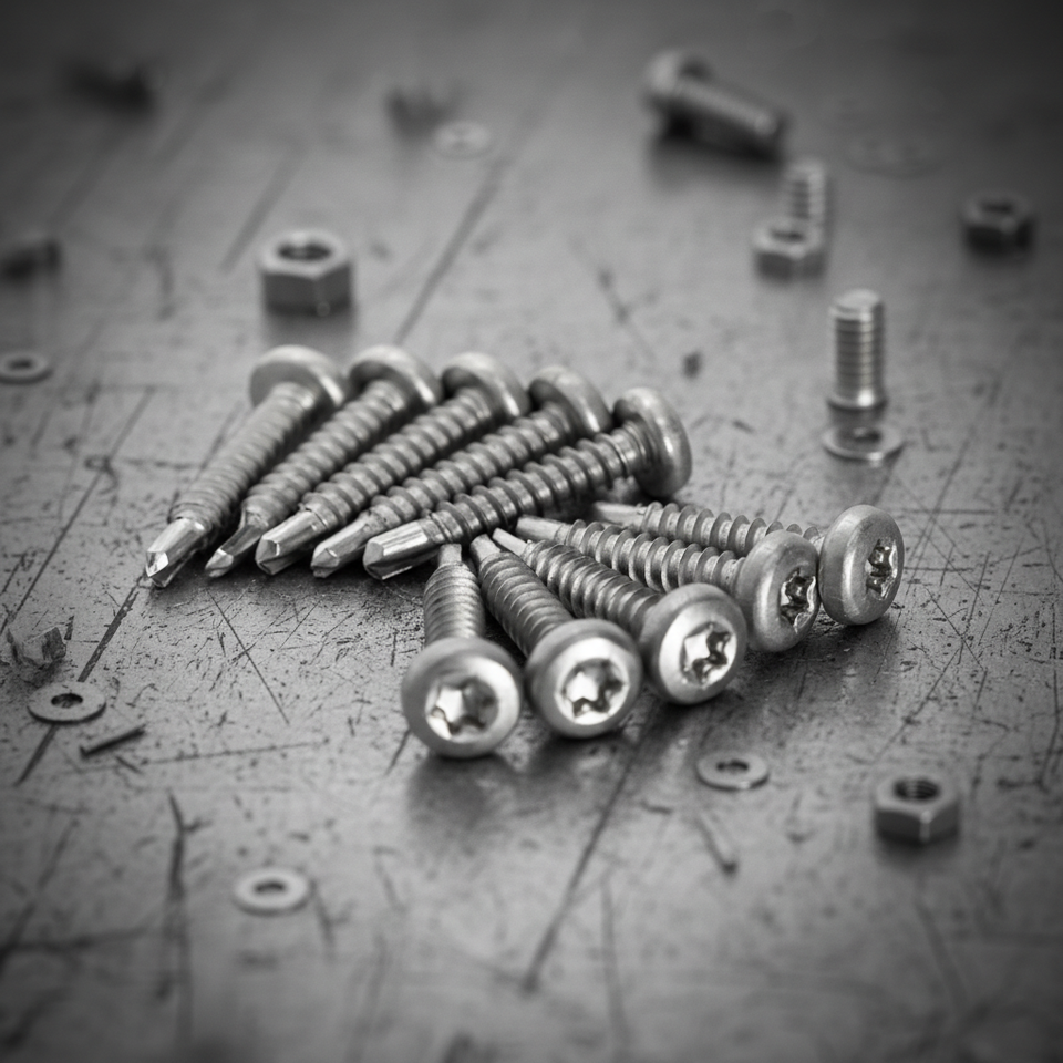 Thread Design:Deep coarse thread, sharp and uniform, optimized for metal fastening