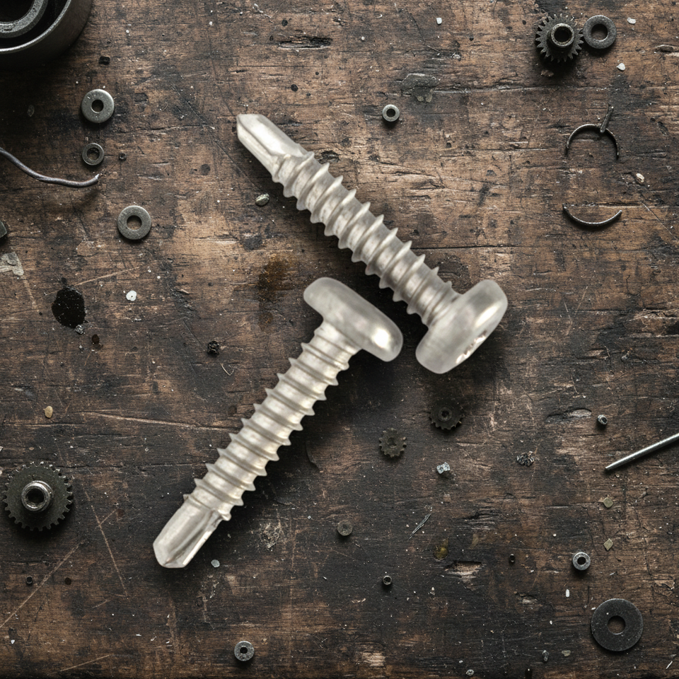 Thread Design:Deep coarse thread, sharp and uniform, optimized for metal fastening