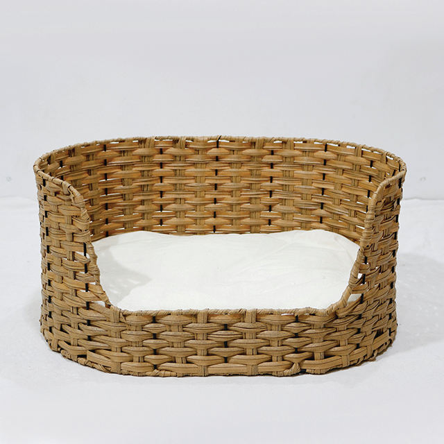 Lit pour animaux de compagnie en rotin tissé PE, nid pour chat et chien tissé à la main avec coussin moelleux pour une utilisation en intérieur