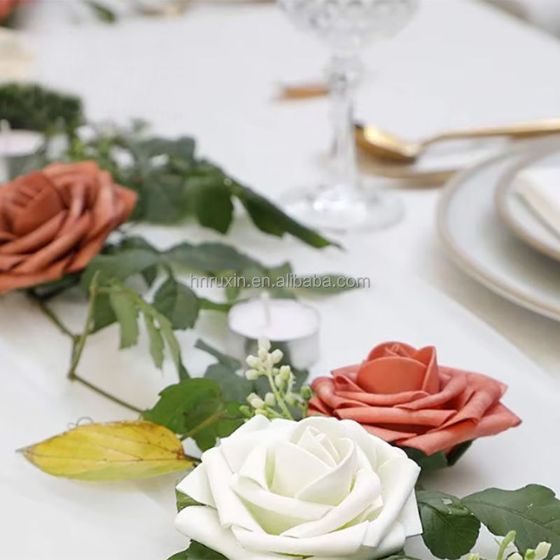 PE Rose Fleurs Roses Blanches Tiges pour DIY Centres De Table De Mariage Décorations Décoration Intérieure Et Extérieure Cadeaux De Vacances