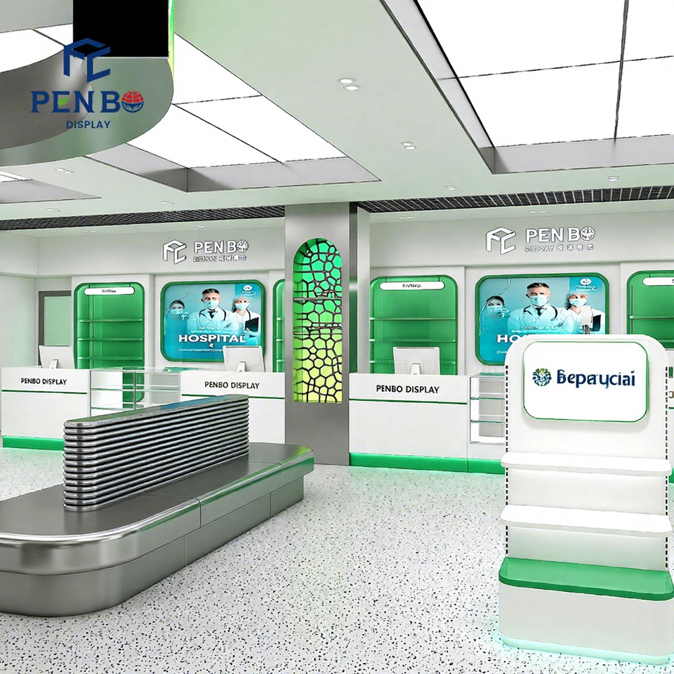 Vitrine de pharmacie de style moderne PENBO, comptoir de magasin, design de pharmacie de détail, étagères d'exposition