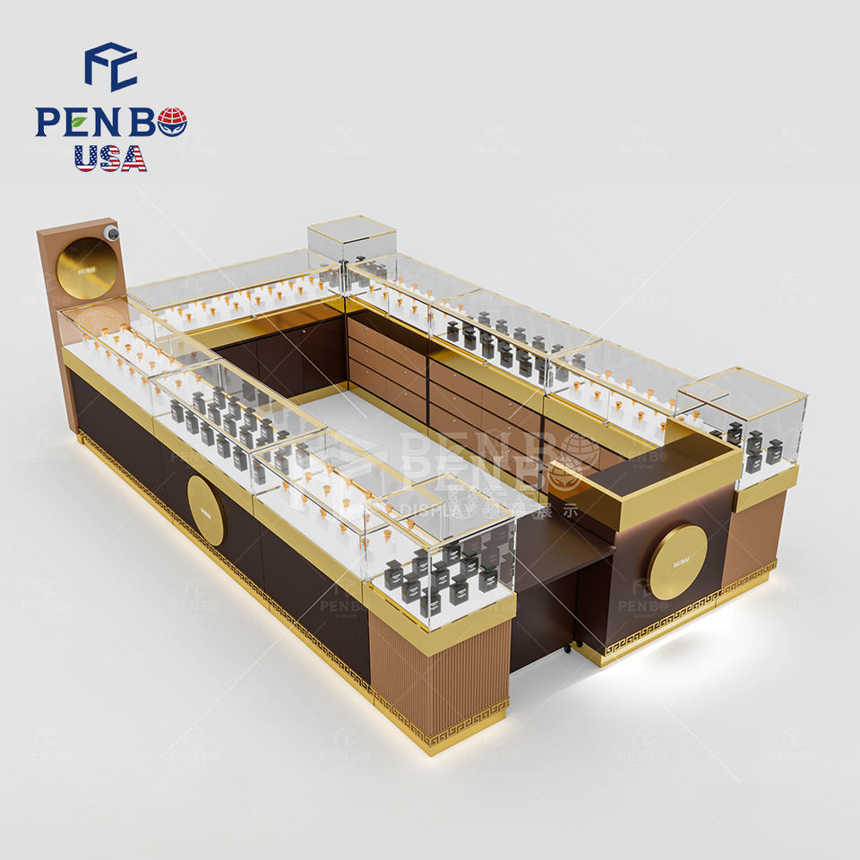 Kiosque d'exposition de parfums PENBO, éclairage LED, acier inoxydable, MDF, bois massif, vitrine, boutique de cosmétiques, taille et couleur personnalisables