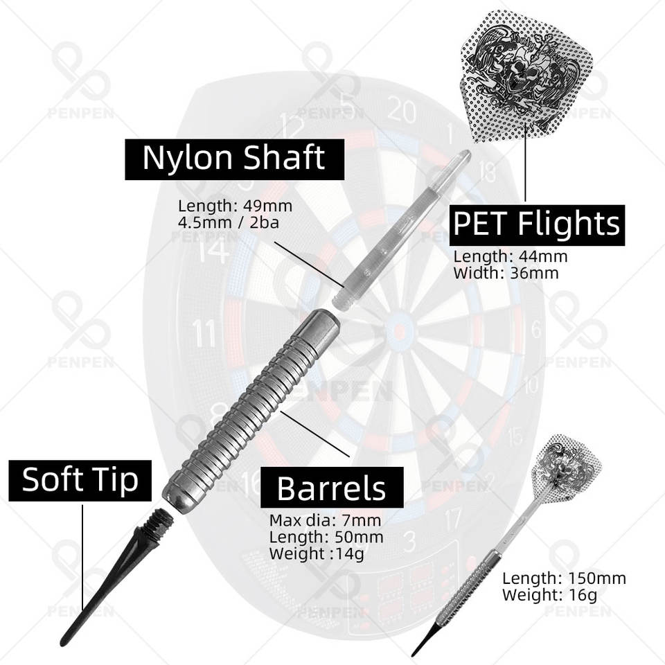 PENPEN Ensemble de fléchettes à pointe souple personnalisable durable de 3 pièces pour bar/club/jeu baril en acier inoxydable avec tiges en nylon 6 pièces vol en PET