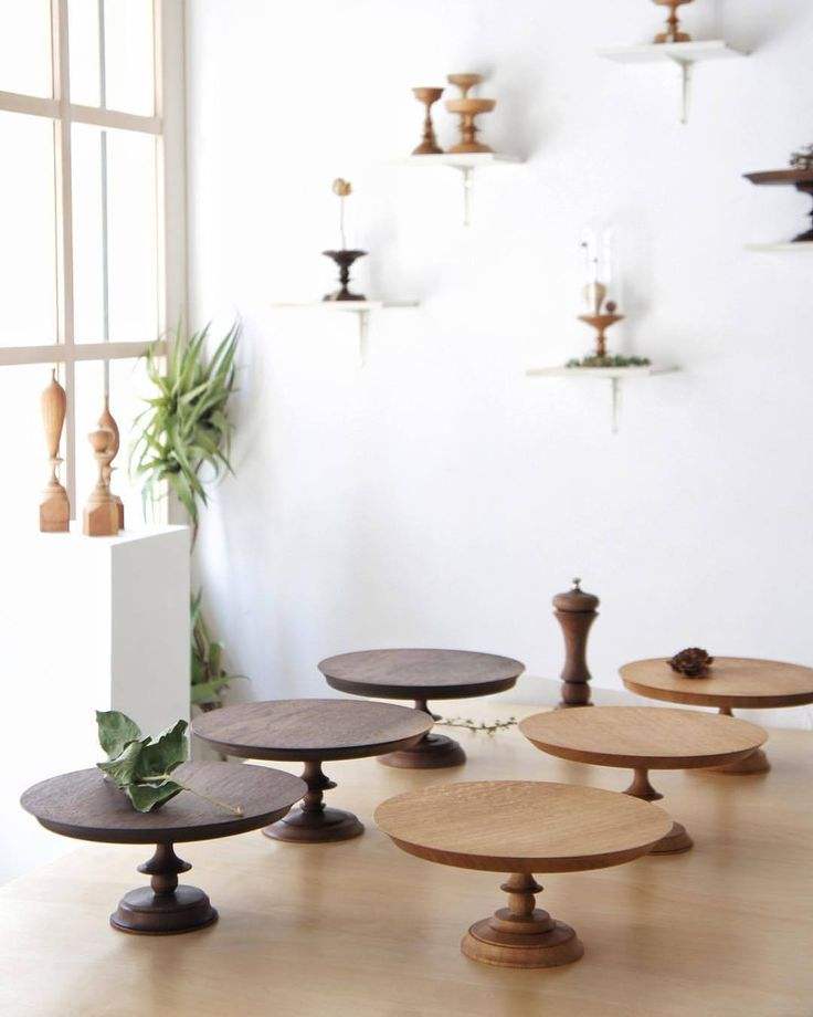 Plateau rond en bois d'acacia de haute qualité PARFAIT pour servir des gâteaux et des fruits
