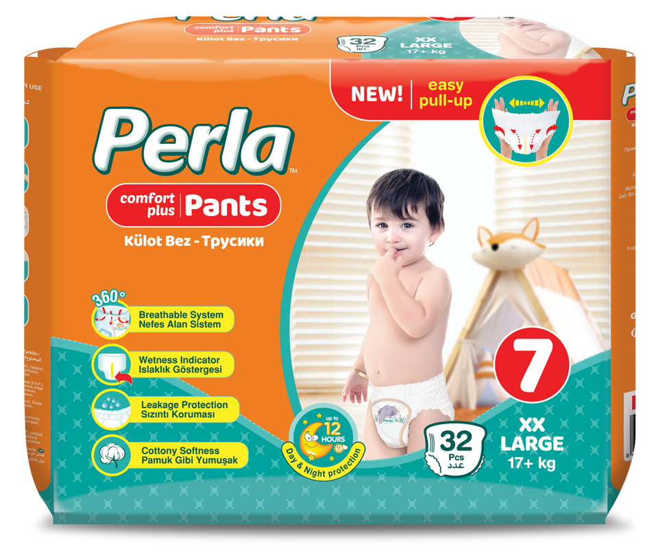 Couches-culottes jetables PERLA pour bébés, avec protection anti-fuites en pulpe de cellulose et SAP japonais, modèle imprimé n°1, taille 3 à 7, fabriquées en Turquie