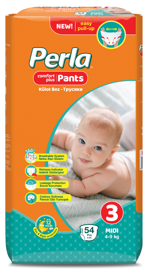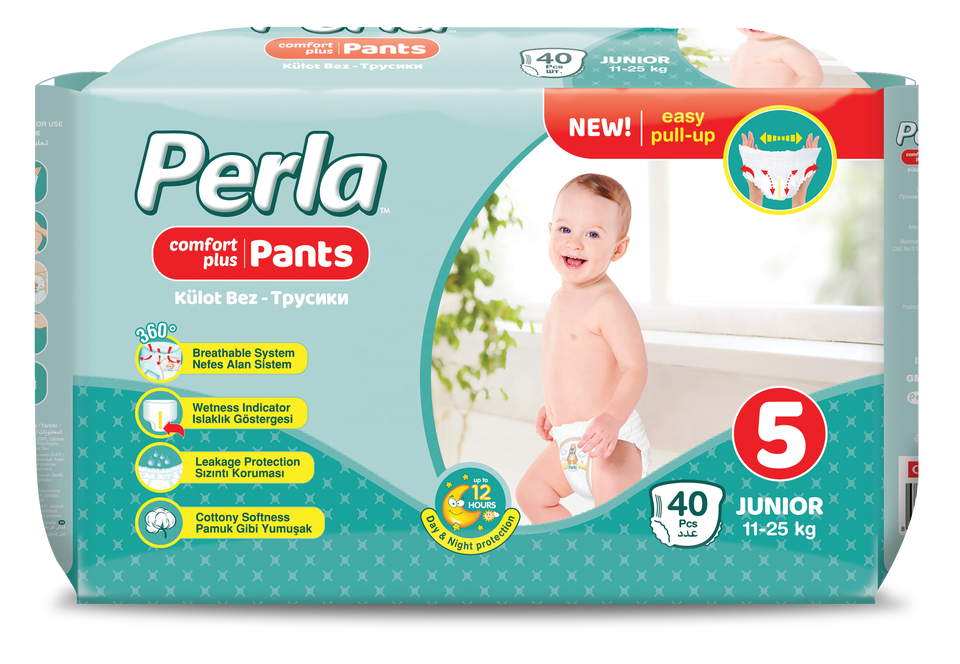 PERLA Disposable Baby Diapers Pull Up Pants Fluff Pulp Leak Guard Japan SAP Size 3 to 7 Made in Turkey