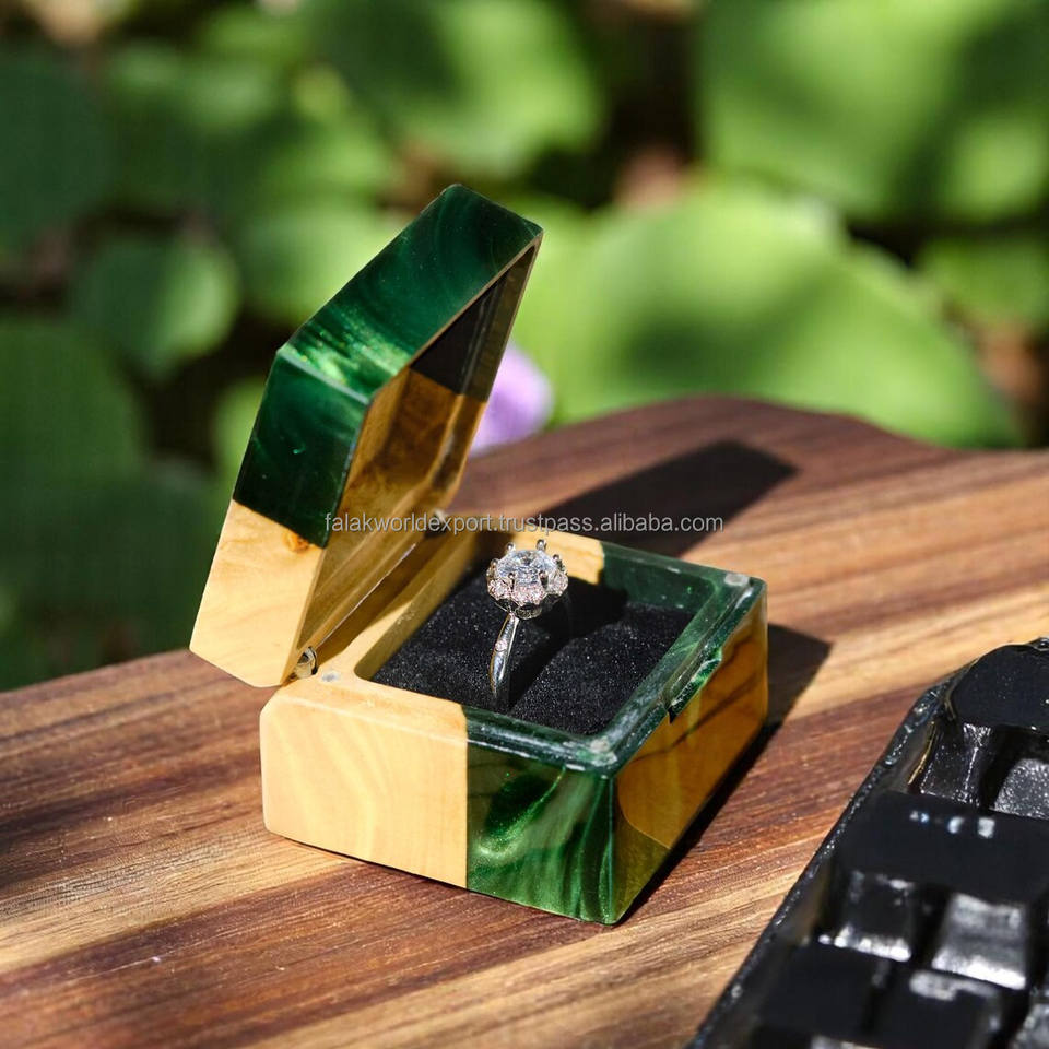 PERSONALIZED RUSTIC HANDMADE Wholesale Engagement Proposal Wedding Unique Double Slot Wooden and Resin Jewelry Ring Box By FWE