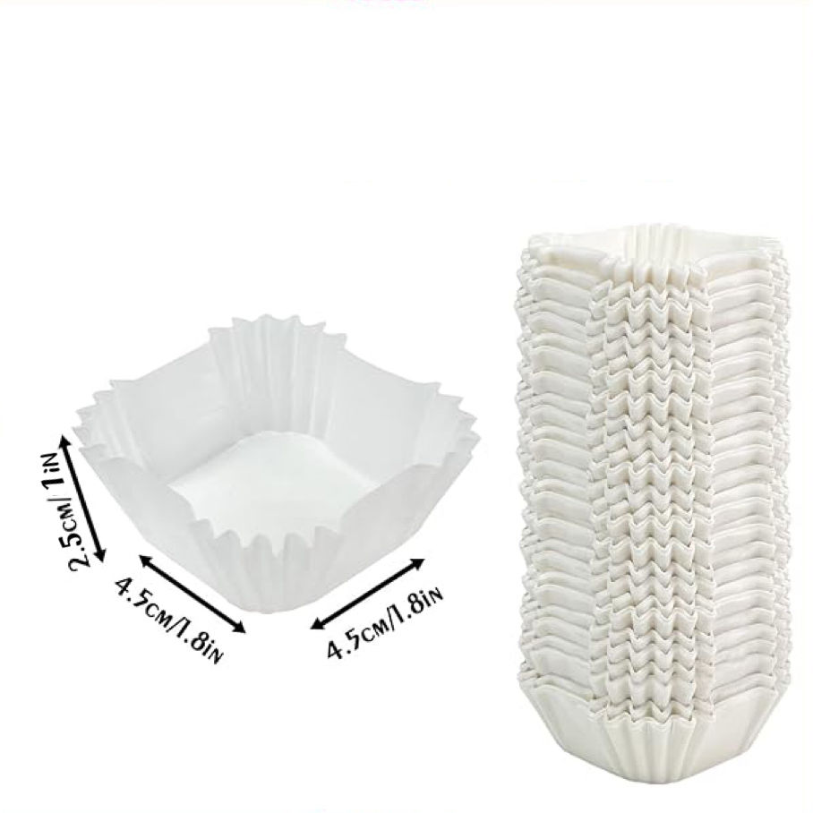 Doublure carrée pour cupcakes enduite d'animal de compagnie Plateau à fruits blanc étanche Conteneur en papier alimentaire jetable pour base aérienne 4.3*4.3 Hauteur 2.5cm