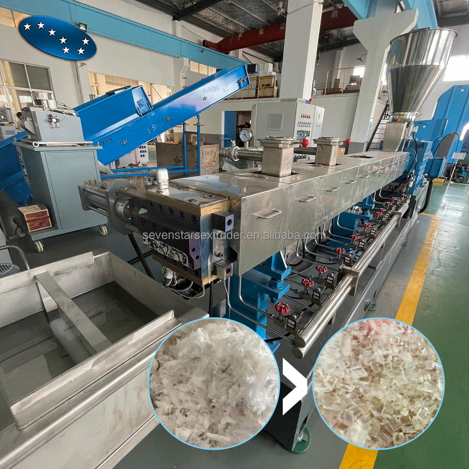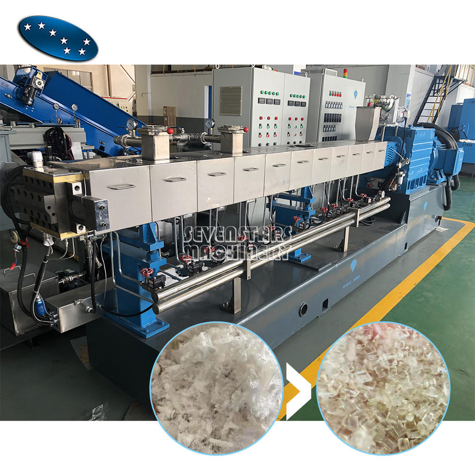 Machine de recyclage de fibres de déchets PET sous système de granulation de brins d'eau machine de granulation parallèle à double vis