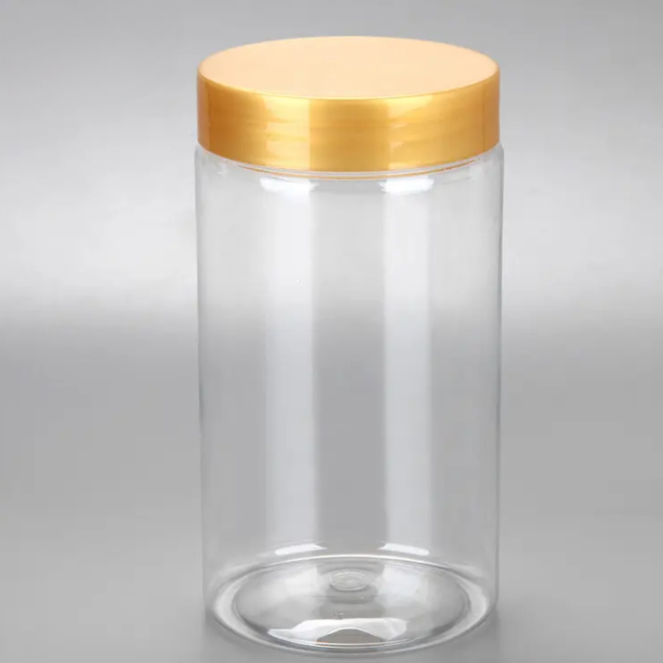 PET Plastic Food Jars for Baby Food Candy Storage in Various Capacities Colors with Plastic Aluminum Lids Cylindrical Shape