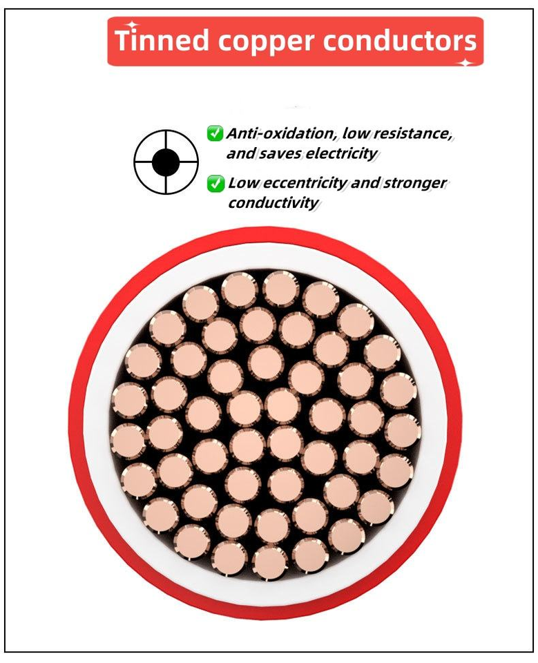 Câble solaire industriel PF2-F, multibrins, cuivre étamé, isolation XLPO, gaine LSZH sans halogène, 1500V CC/1000V CA pour