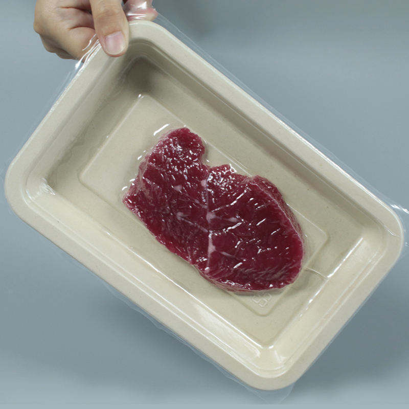 Bagasse jetable biodégradable à haute barrière personnalisée sans PFAS plateaux scellés par peau sous vide emballage de plats préparés pour les repas