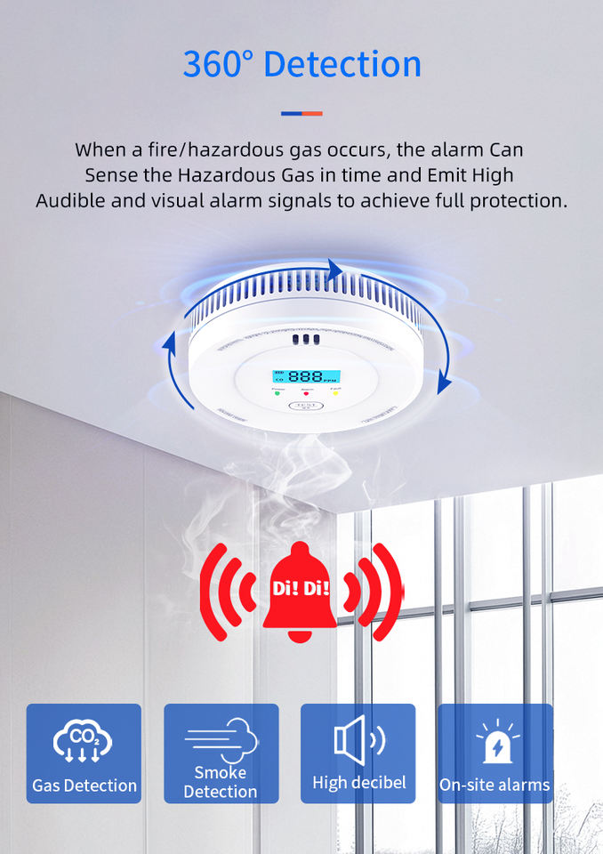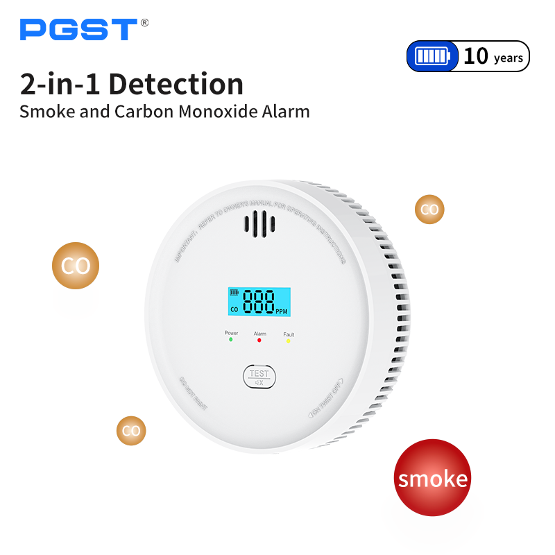 Détecteur de fumée CO photoélectrique/ Chimique sans fil WiFi PGST pour la maison, double capteur, autonomie de 10 ans, couverture de 20-40m, 85