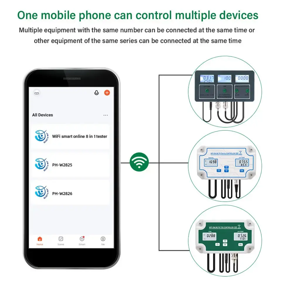 PH CE TDS SEL S.G. Temp ORP FF mètre WIFI contrôle testeur de qualité de l'eau 8-en-1 moniteur intelligent multifonction pour aquarium