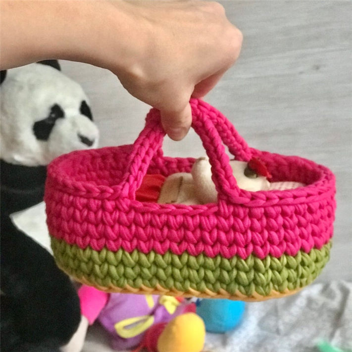 1pcs/polybag,50pcs/carton or according to clients request for PH888 Custom color handmade Moses Basket Hand crocheted doll bed crib Doll gift for baby home basket for dolls for toys