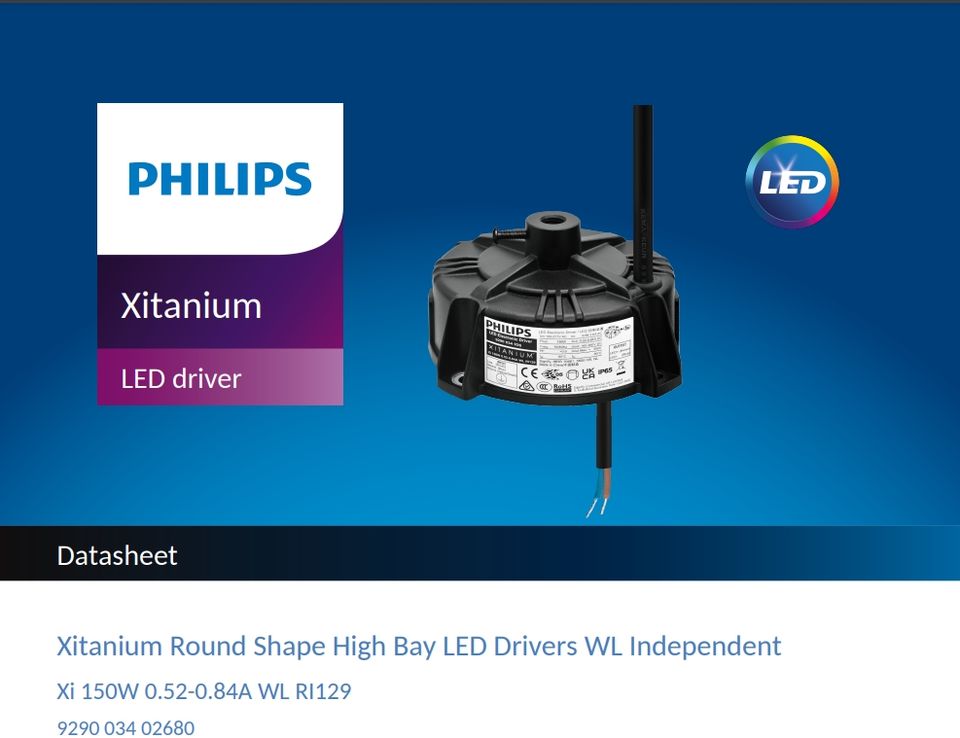 Conducteurs LED pour éclairage industriel PHILIPS Xi 100W 0,35-0,55A 1-10V GL AUX RI132S 929002825580 Conducteur LED pour entrepôt PHILIPS