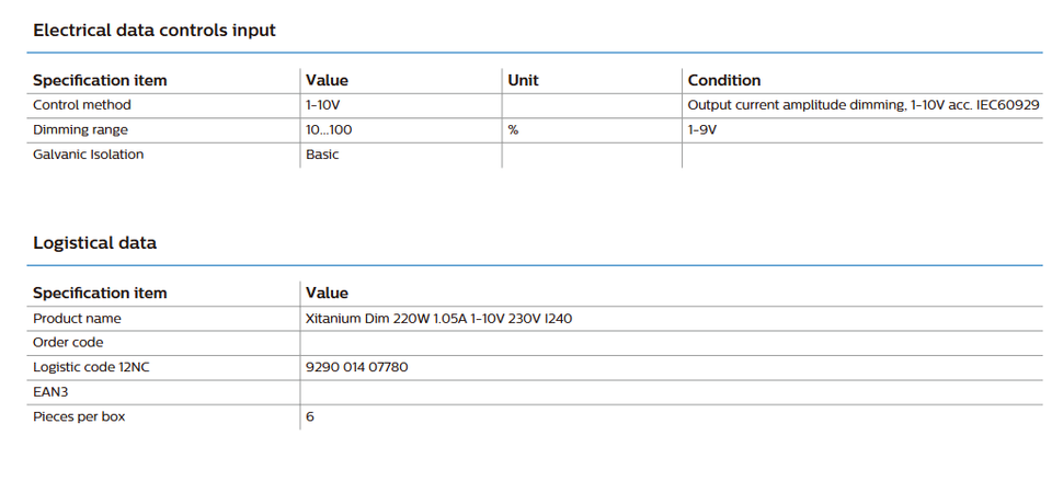 Type de produit:Xitanium Dim 220W 1.05A 1-10V 230V I240