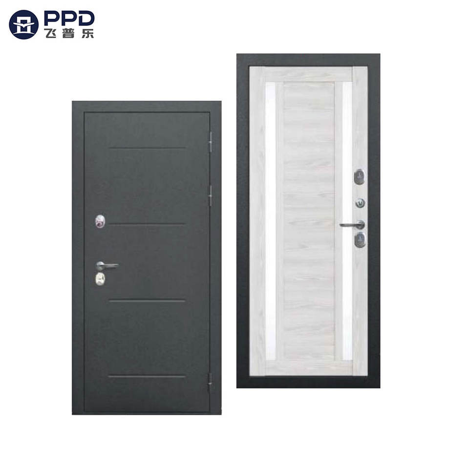 Porte russe PHIPULO de bonne qualité, soigneusement conçue, avec une face avant en acier et une face arrière en bois, dégageant qualité et sophistication.