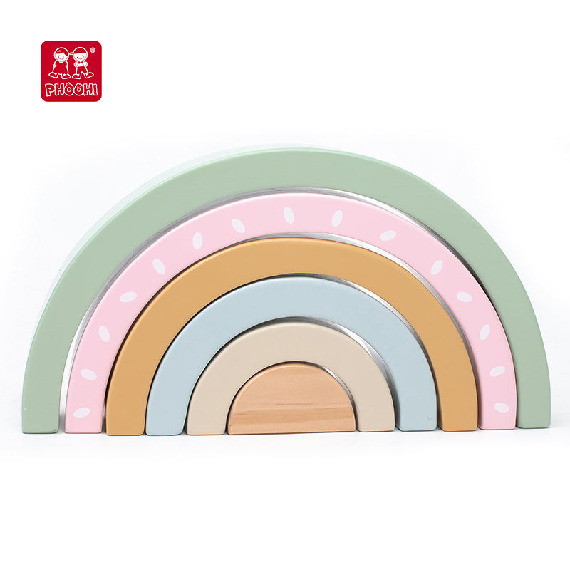 PHOOHI bébé en bois arc-en-ciel empilable bloc jouet éducation des enfants arc-en-ciel bloc jouet ensemble
