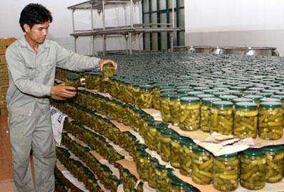 Concombres marinés à l'acide acétique en fût de 180 kg, conservés en saumure