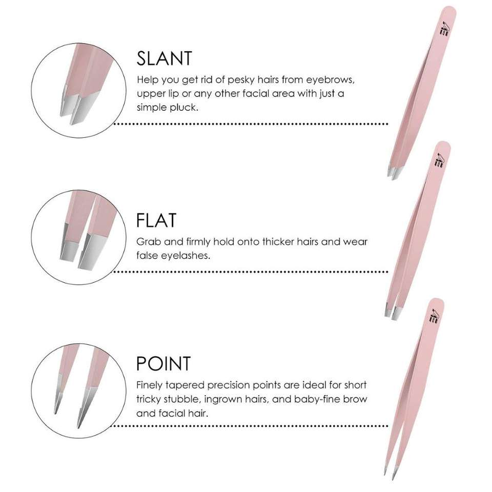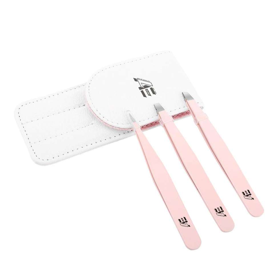 Kit de 3 pinces à épiler en acier inoxydable rose, très vendu, avec étui pour sourcils, pour femmes et hommes / Neuf, directement de l'usine 2026