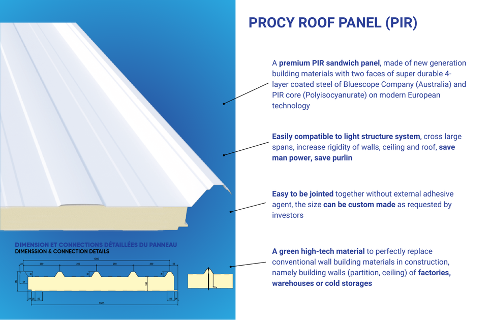 Panneau sandwich PIR pour mur intérieur, système d'isolation thermique élevée, résistant au feu, pour salle blanche, hôpital, froid