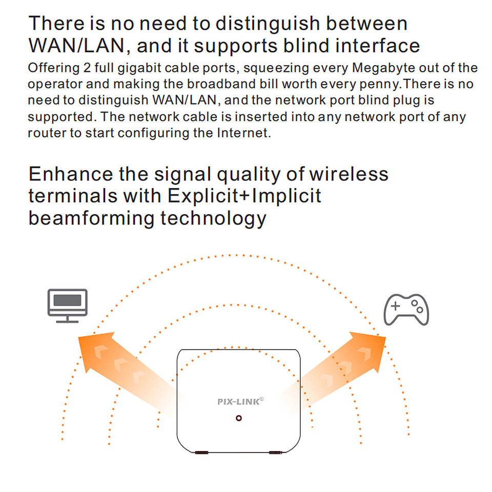 PIX-LINK AX1800 WI-FI 6 Mesh wifi Routeur Système Mesh 2.4G 5Ghz 1800mbps Full Gigabit Mesh Wifi signal répéteur