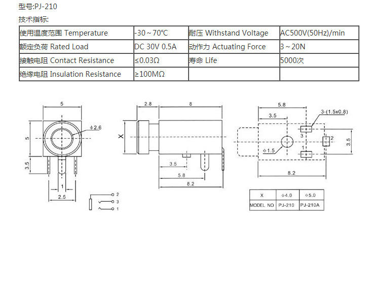 Prise audio PJ-210 2,5 mm, montage vertical à 3 broches pour PC/ordinateur, connecteur femelle